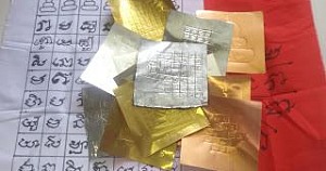 แผ่นยันต์ ผ้าแดง ขาว ทอง นาก เงิน ตะกั่ว จารด้วยมือ